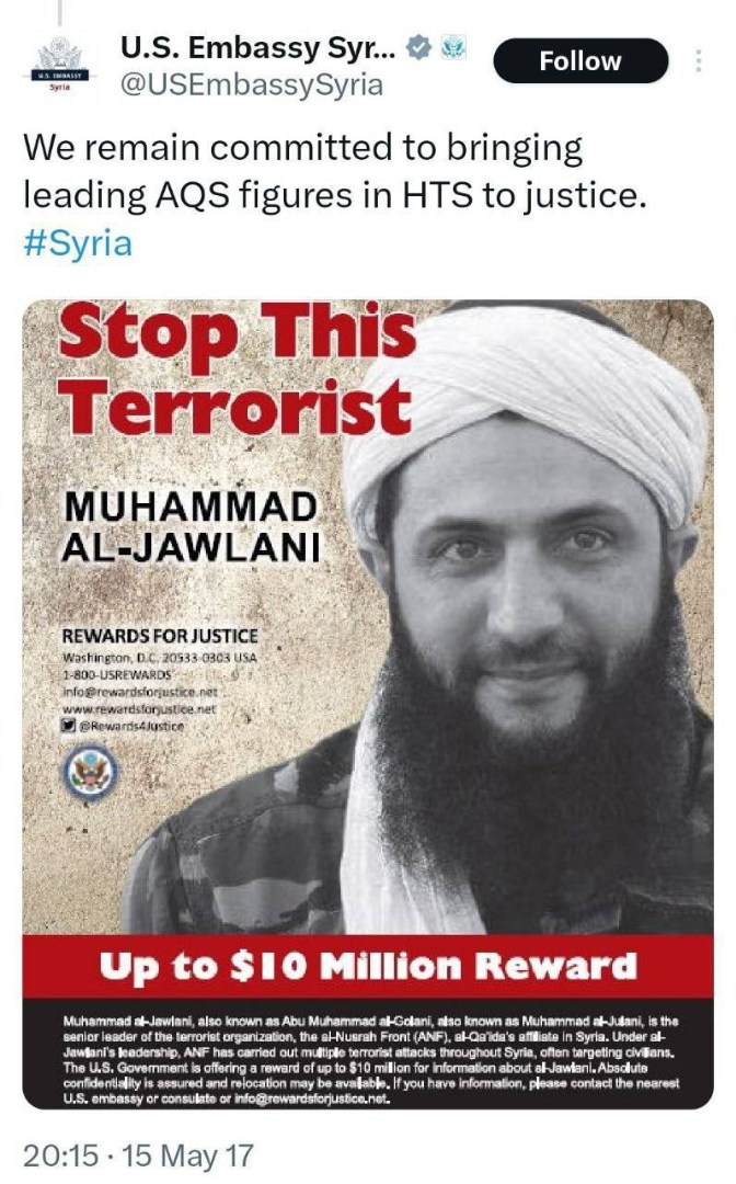 Bis zu 10 Millionen Dollar Belohnung für Informationen über den Führer der Al Nusrah Front