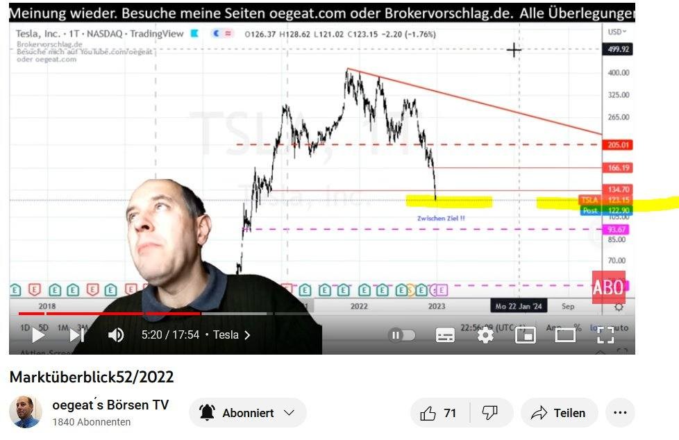 Hallo Oegeat, hast Du evtl. zur Tesla eine aktuelle charttechnische Analyse. Gerne auch längerfristig Evtl. auf Deinem YouTube Kanal? Würde mich interessieren. wenn die Märkte jetzt weiter Richtung Nov. fallen, käme das dem typische Verlauf für nicht wiedergewählte US Präsidenten nahe.