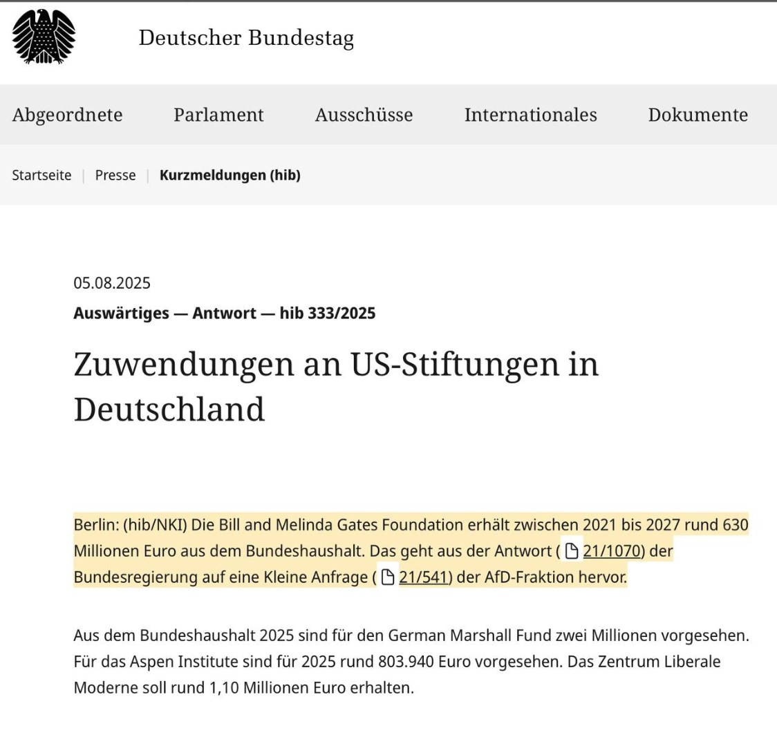 Die Bundesregierung hat auf eine Kleine Anfrage zur Finanzierung von US-amerikanischen Stiftungen, Denkfabriken und NGOs erklärt, dass im Zuge von sogenannten „Kombifinanzierungen“ alleine seit 2023 über 600 Millionen Euro an Projekte der Bill und Melinda Gates Stiftung geflossen sind. Ebenfalls hat die Bundesregierung eingeräumt, dass die Grünen-nahe „Denkfabrik“ Stiftung Liberale Moderne (LibMod) sowie die deutsche Dependance der US-Denkfabrik Aspen Institute massiv mit Millionen an Steuergeldern gefördert werden. Aus der Anfrage geht ebenso hervor, dass 2024 Robert Habeck die meisten Kontakte aller Bundesminister mit Bill Gates und dessen Stiftung unterhalten hat. Von Florian Warweg.