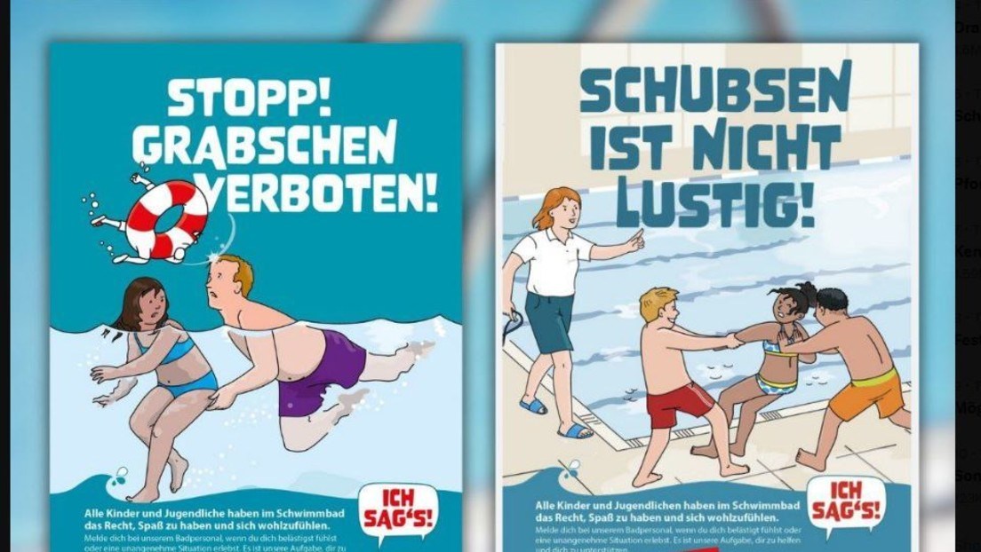 Zwei Motive der neuen Schutzkampagne "Ich sag's", für mehr Sicherheit in Kölner Freibädern